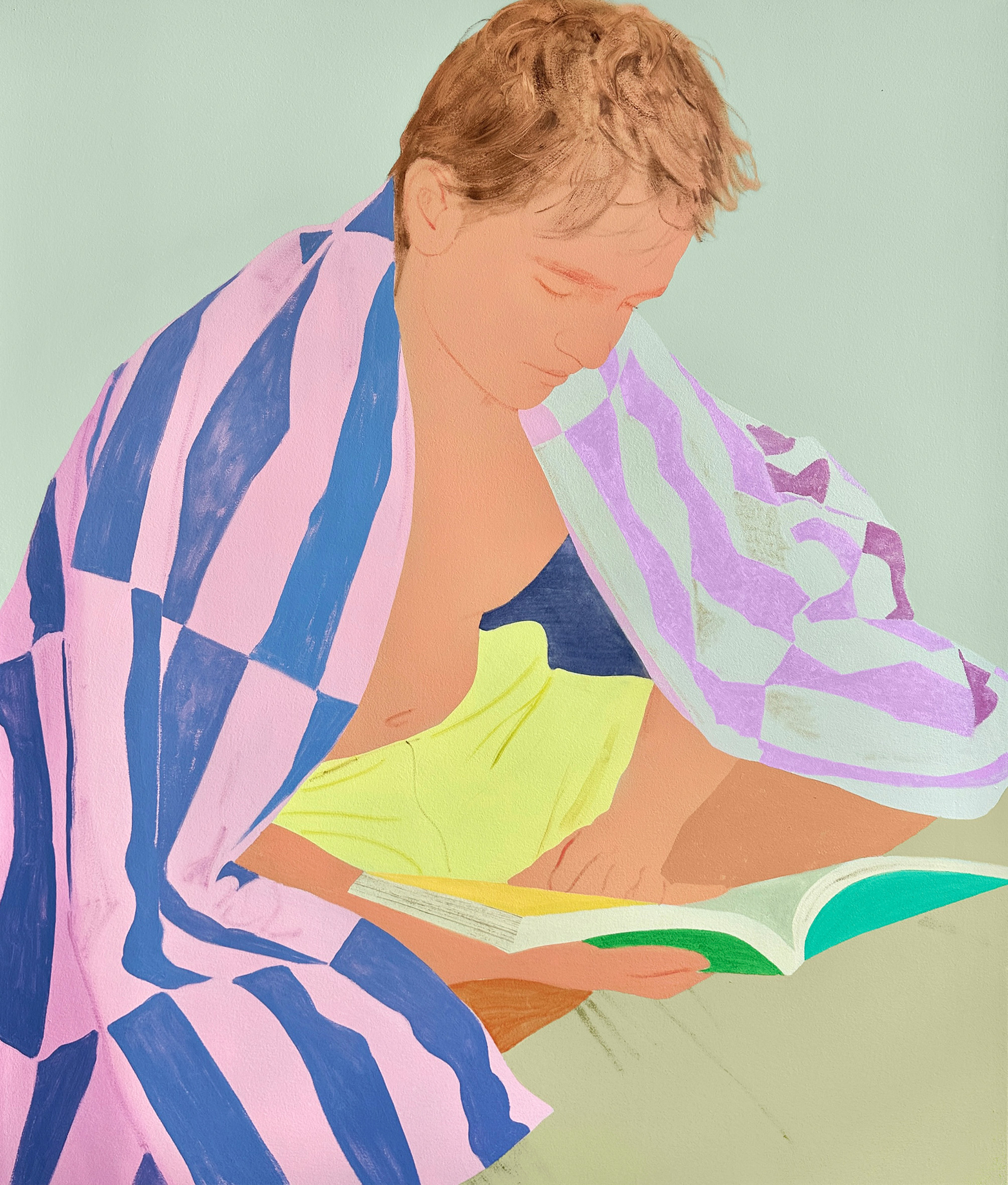 Moritz Moll, Summer Night Reading, 2025, oil, acrylic, spray paint on canvavas, 130 x 110 cm