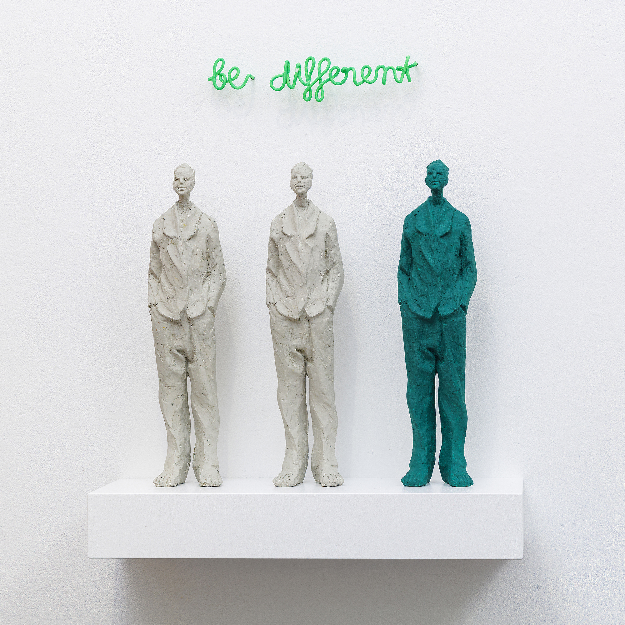 Tina Heuter, be different, 2023, Concrete, color, lettering, base, 5-parts, edition of 15, 41 x 25 x 10 cm, 5.400€
