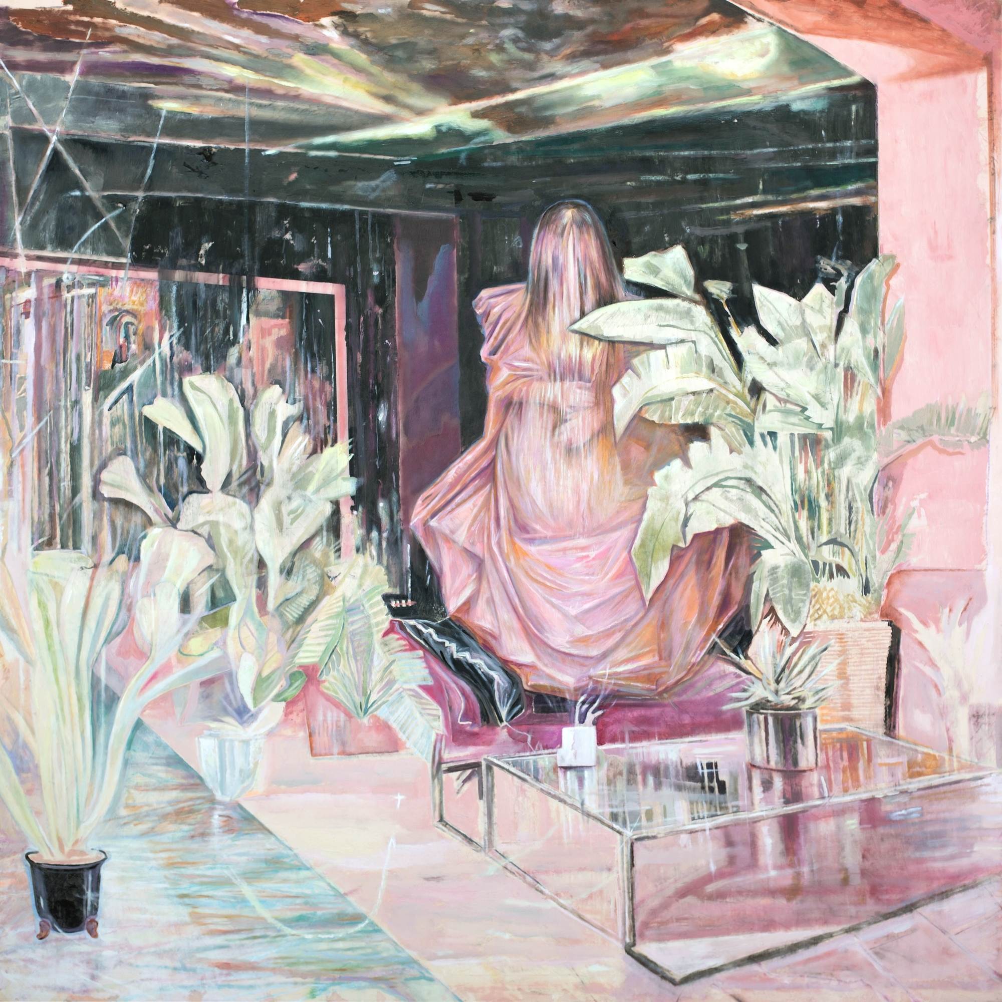 Jonathan Esperester, Die Geburt der Venus, 2025, Oil, acryl & ink on chiffon, 140 x140 cm, 6.900 €