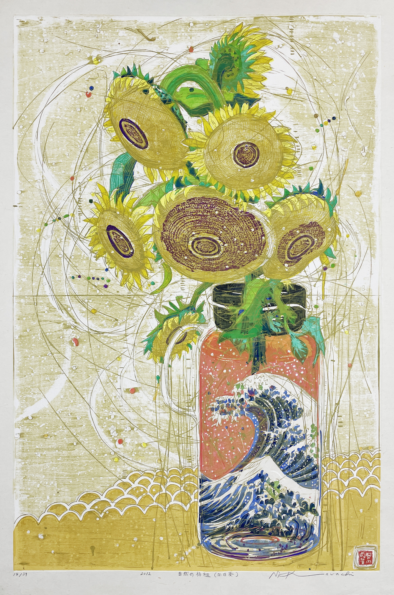 Seiko Kawachi, Framed Nature Sunflower, 2008, woodblock, 99.5 x 68.5cm, €4600